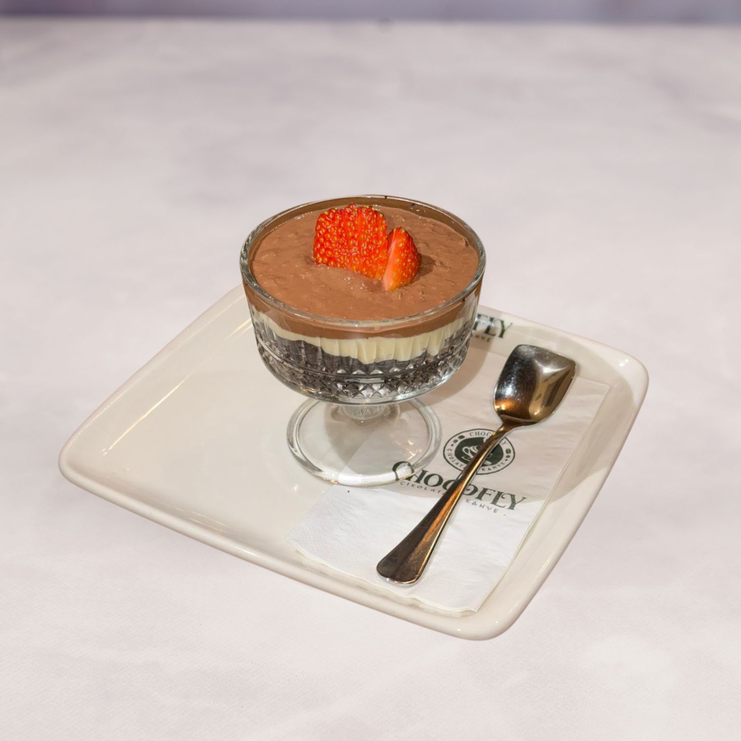 Çilek, Muz, Kivi ve Gerçek Belçika Çikolata ile servis edilir ( Sütlü-Fildişi-Ruby )...